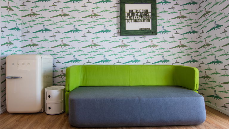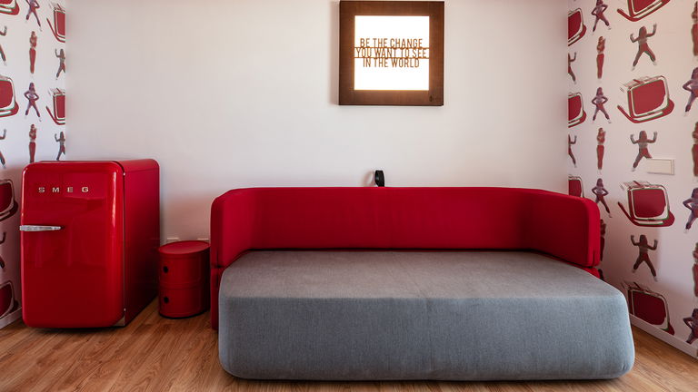 Estudio con 2 camas individuales, sofá cama, aire acondicionado, TV, balcón, zona de cocina completa con microondas y nevera y baño privado con bañera y ducha.