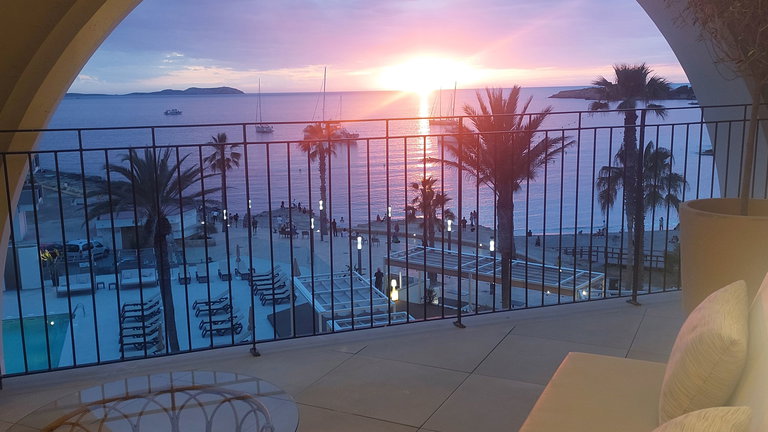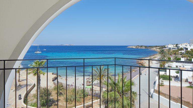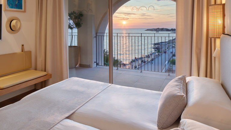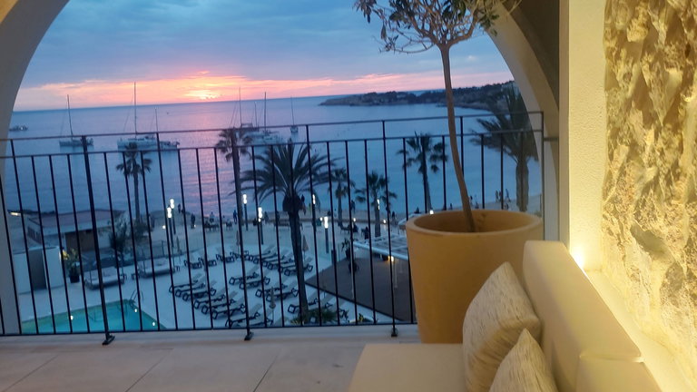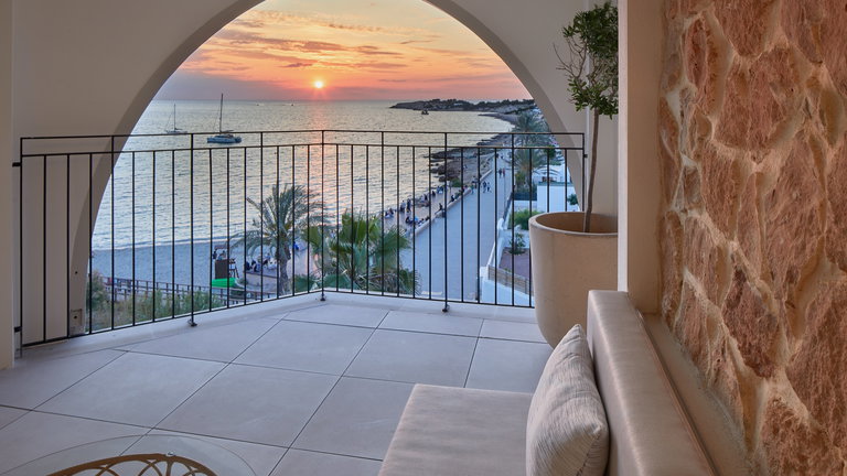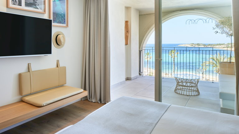 Mira al infinito y contempla el magnífico entorno de la playa de Caló des Moro, incluso desde muchas de ellas de la maravillosa puesta de sol. ¡Sin salir de la habitación!